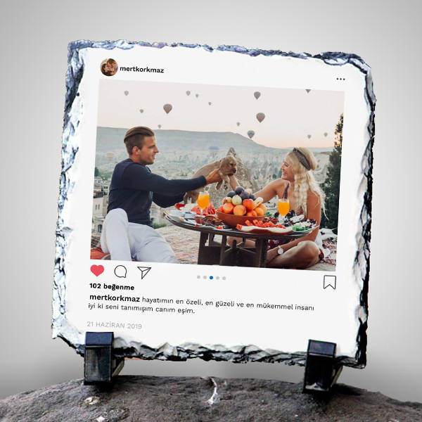 Ömür boyu saklayacağı bir hediye seçmek isterseniz de çalışma masasında ya da evinin baş köşesinde yer vereceği bu şık taş baskıyı tercih edebilirsiniz. Fotoğrafınız ve mesajınızla hazırlayacağınız dekoratif taş taşıma aparatlarıyla birlikte gönderiliyor.